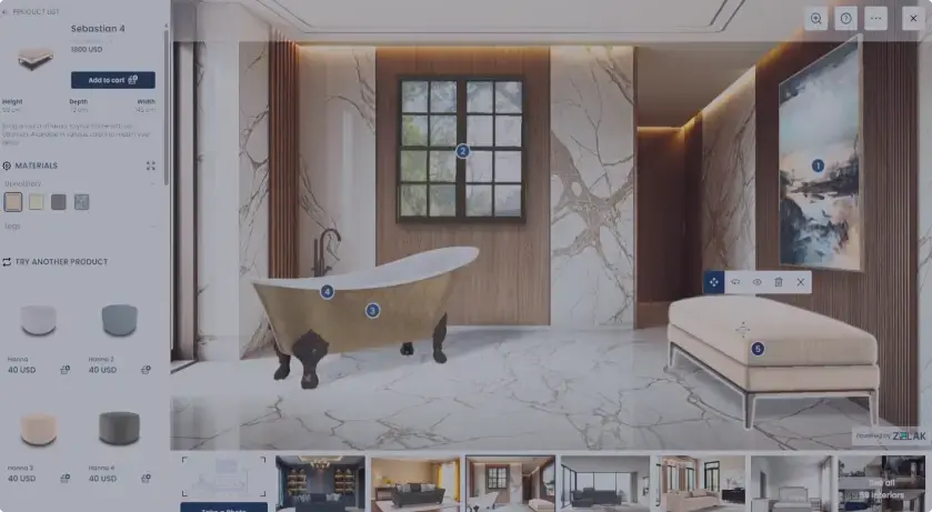 Unlike other 3D product visualization companies, Zolak supports both static product pages and immersive digital showrooms, empowering you to embrace new technologies and stay ahead in the global market.