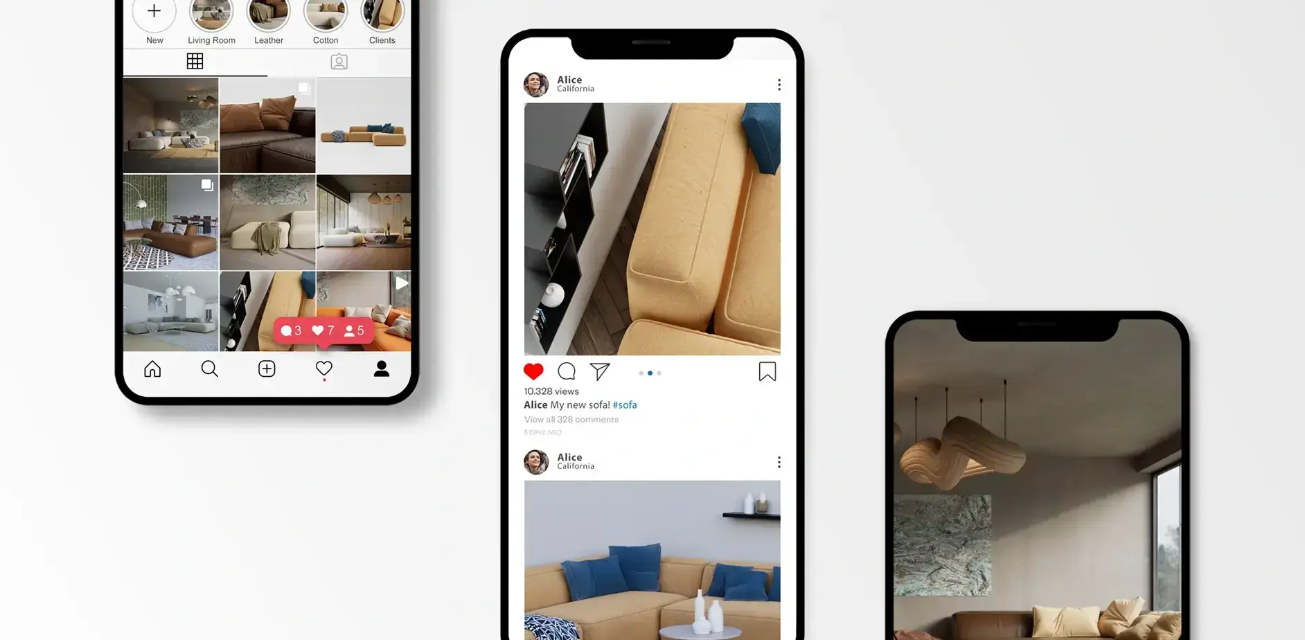 - Erstellen Sie mehrere Lifestyle-Visualisierungen in verschiedenen Raumsettings.