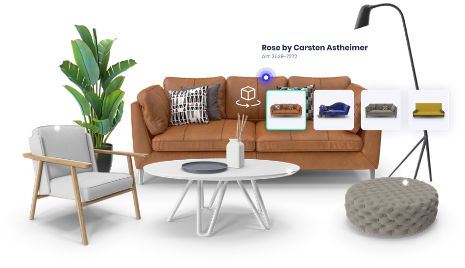 - Immersive interactivity in pre-designed virtual interiors or the customer’s own room.
